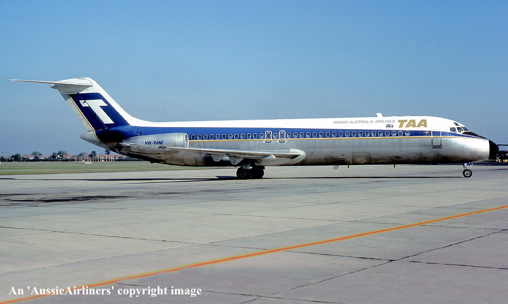 VH-TJM. TAA Trans Australia Airlines - 'Robert Towns' in the standard livery at Melbourne Tullamarine Airport, January 1980. (G. Bennett Copyright Image 1135-487.) |