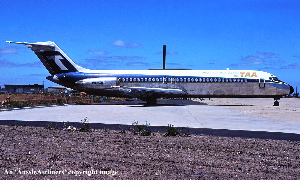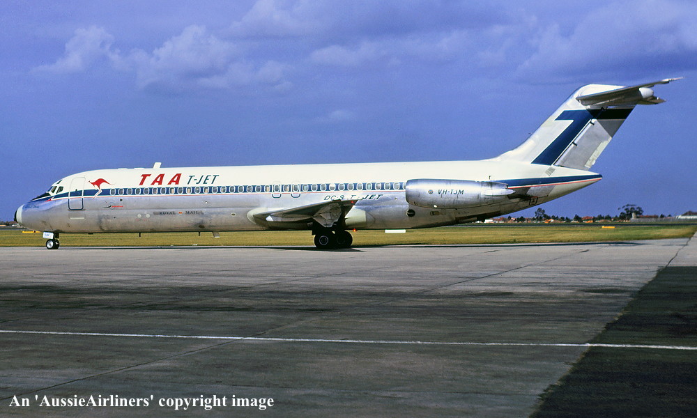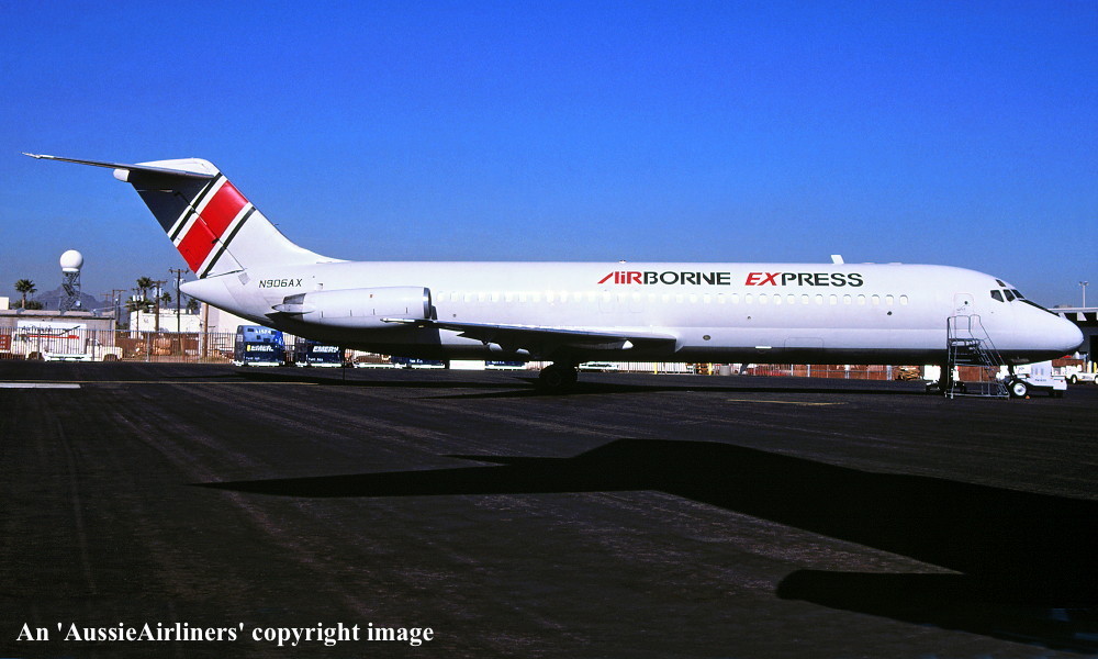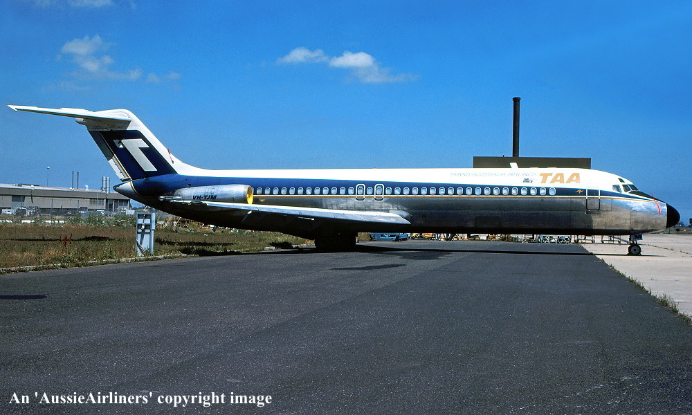 This aircraft was the first of three optioned DC-9s ordered by Australian National Airlines Commission for T.A.A. The original order was placed for 3 DC-9-20s with 3 options - April 01, 1965 This order was subsequently changed to 3 DC-9-30s with 3 options - April 24, 1965 The contract was signed with Douglas at Long Beach - November 10, 1965 Construction complete at the Douglas Long Beach plant - February 1968 Powered by two Pratt & Whitney JT8D-7 engines First flown as 'VH-TJM' at Long Beach - February 29, 1968 Entered onto the Australian Aircraft Register as VH-TJM - March 03, 1968 Registered to the Australian National Airlines Commission, Melbourne Accepted by Trans-Australia Airlines at Long Beach - March 07, 1968 Departed Long Beach on the delivery flight to Australia - March 08, 1968 It arrived at Melbourne (Essendon) on completion of the delivery flight from the United States - March 10, 1968 Delivery route: Long Beach - Honolulu - Pago Pago - Brisbane - Melbourne The aircraft was delivered as 'John Roe' but renamed 'Robert Towns' during the preservice layup The entry into service of this aircraft was delayed due to a pilot's strike Operated its first revenue service - April 09, 1968 The tail cone fell off the aircraft at Brisbane Airport - September 24, 1971 Withdrawn from service at Melbourne (Tullamarine) - 1981 Returned to service - 1981 Operated its final revenue service Launceston - Melbourne (Tullamarine) as TN500 - October 26, 1981 It had flown 35,422:35 hours with 38,188 cycles Withdrawn from use and stored at Melbourne (Tullamarine) The Trans-Australia Airlines titles and logo were removed - February 03, 1982 Sold to Australian Aircraft Sales (A.A.S.) - March 1982 Sold to Airborne Express (U.S.A.) - March 03, 1982 Departed Melbourne (Tullamarine) in the basic 'TAA' livery on the ferry flight to the United States - March 31, 1982 It arrived at Wilmington on completion of the ferry flight from Australia - April 03, 1982 Delivery route: Melbourne - Brisbane - Pago Pago - Hilo - Long Beach - Wilmington Cancelled from the Australian Aircraft Register - April 05, 1982 Entered onto the United States Aircraft Register as N906AX - May 1982 Registered to Airborne Express The aircraft was converted to freighter configuration Certificate of Airworthiness issued by the F.A.A. - June 02, 1982 Operated its first Airborne Express revenue service - June 02, 1982 Airborne Express was renamed ABX Air - 1988 It was hushkitted with Pratt & Whitney JT8D-7B engines Withdrawn from use - November 2008 Sold to D.H.L. Network Operations (U.S.A.) Incorp, Plantation, Florida - December 22, 2008 Registered to D.H.L. Network Operations (U.S.A.) Incorp - January 02, 2009 Cancelled from the United States Aircraft Register - November 18, 2009 Stored at Roswell, New Mexico and believed to have been scrapped by Stewart Industries |