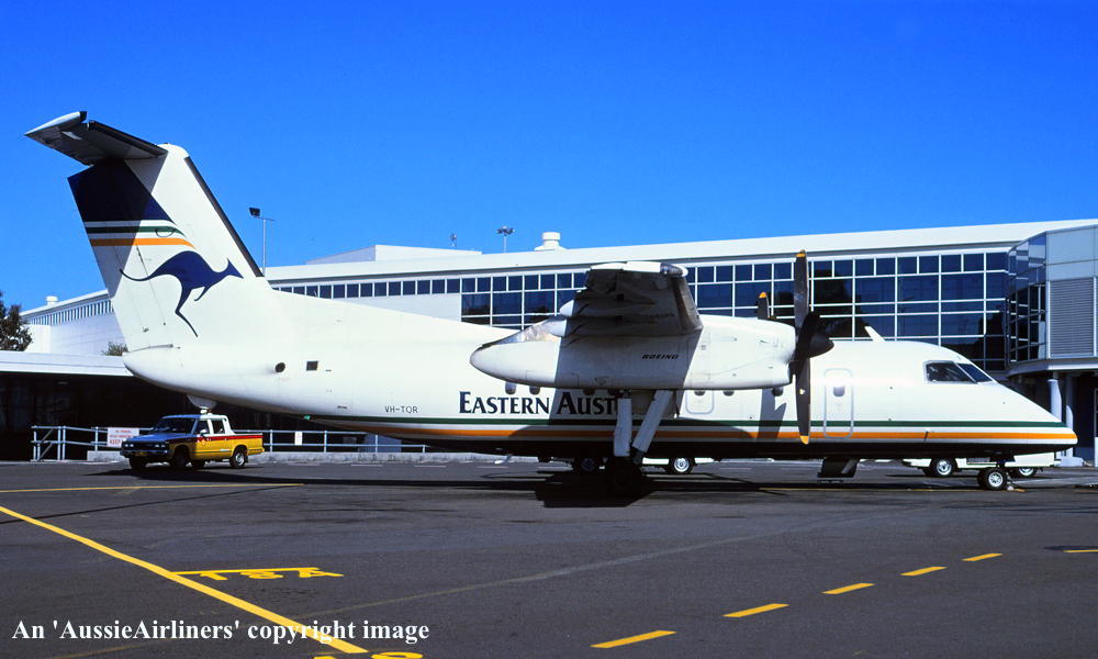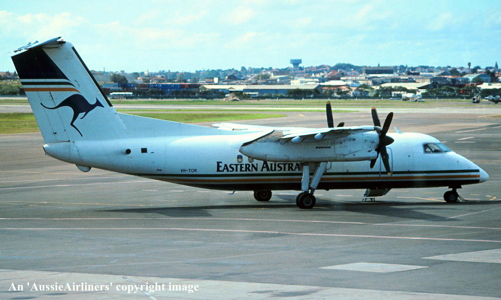 VH-TQR. Eastern Australia - in the 'Australian' livery at Sydney Kingsford Smith Airport, February 1995. (N. Louis Collection Copyright Image 2923-171.) |
