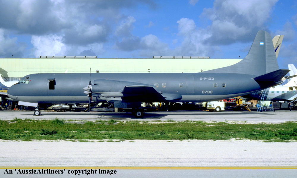 6-P-103. Armada Argentina - in the dark grey livery at Miami Airport, September 1983. (R. N. Smith Collection Copyright Image 1808-323.) |