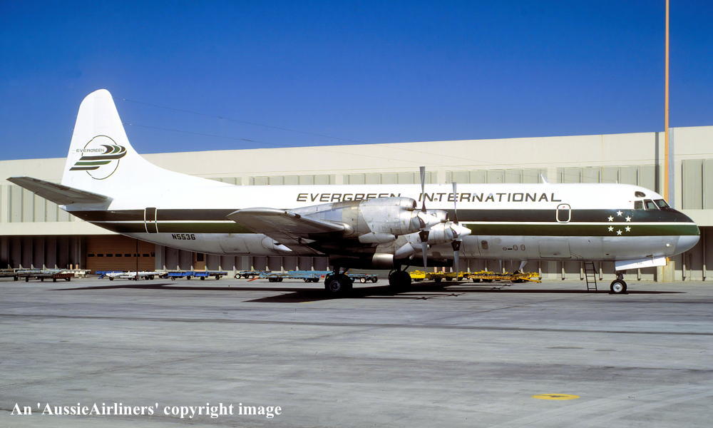 N5536. Evergreen International - in the standard livery at an unknown airport, October 1972. (R. N. Smith Collection Copyright Image 1808-824.) |