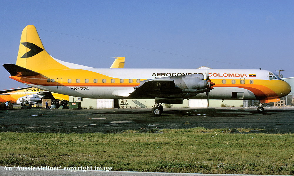 HK-774. Aerocondor Colombia - in the standard livery at Miami Airport, January 1977.