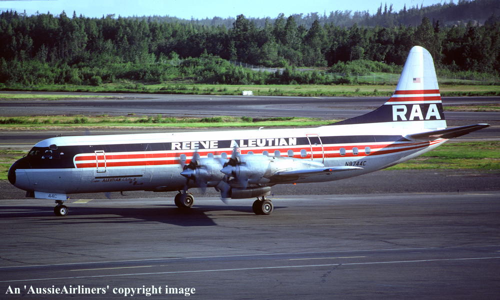 N9744C. Reeve Aleutian - in the standard livery at an unknown airport, July 1982. (R. N. Smith Collection Copyright Image 1808-769.) |