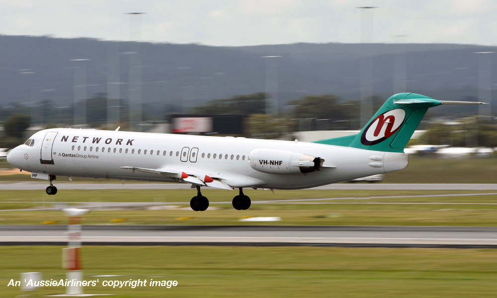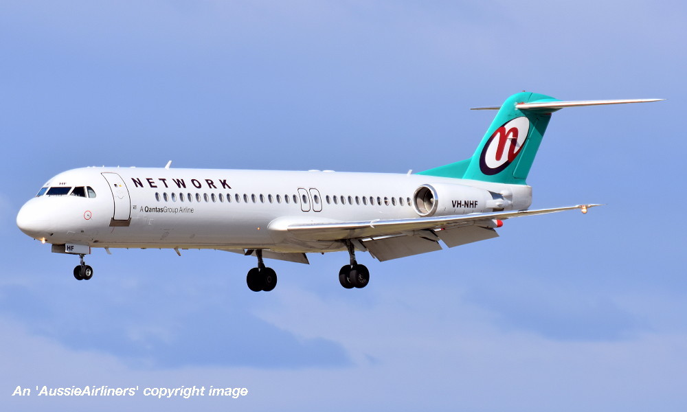 VH-NHF. Fokker F28-0100. c/n 11458. Was also registered as: N1449D; HK-4444-X; PH-AQD. |