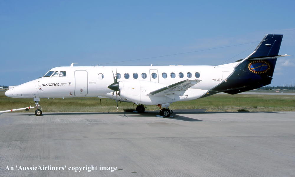 VH-JSX. National Jet - in the standard livery at Brisbane Airport, December 1998. (R. N. Smith Collection Copyright Image 1040-325.) |