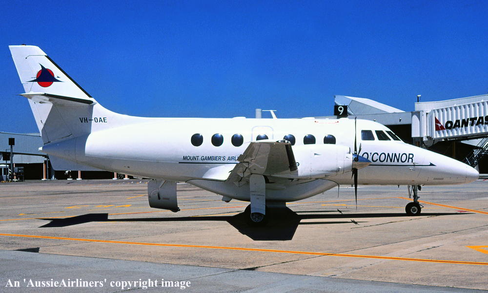 VH-OAE. O'Connor Mount Gambier's Airline - in the standard livery at Brisbane Airport, November 1997.