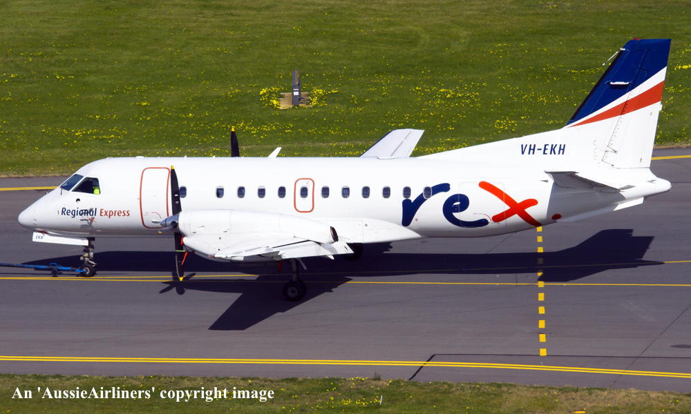 This aircraft was built by Saab Aircraft AB, Linkoping, Sweden - 1995 First flown with the test registration 'SE-C69' - May 22, 1995 Powered by General Electric CT7-9B turboprop engines Entered onto the Australian Aircraft Register as VH-EKH - May 29, 1995 Registered to Kendell Airlines (Australia) Pty Ltd, Wagga Wagga, Australia Accepted by Kendell Airlines at Linkoping - June 1995 Kendell Airlines had been purchased by TNT / News Ltd, the parent company of Ansett Airlines - June 1990 Swedish test registration cancelled - June 29, 1995 Departed Linkoping, Sweden on the delivery flight to Australia - June 29, 1995 It arrived at Wagga Wagga on completion of the delivery flight from Sweden - July 05, 1995 This aircraft was not named Operated its first revenue service Wagga Wagga - Sydney (Kingsford Smith) - July ?, 1995 Ansett suspended all operations due to bankruptcy - September 13, 2001 Operated its last revenue service Coffs Harbour - Sydney (Kingsford Smith) as AN5919 - September 14, 2001 The aircraft was stored at Sydney (Kingsford Smith) Returned to service under administration Sydney (Kingsford Smith) - Canberra - October 08, 2001 Kendell Airlines was sold to Australiawide Airlines operating as Regional Express Airlines (REX) - August 01, 2002 Operated its first revenue service with REX - August 05, 2002 Registered to Australiawide Airlines Ltd - September 19, 2002 Registered to Swedish Aircraft Holdings AB, Sweden - May 11, 2006 Leased to Regional Express Holdings as registered operator Registered to Regional Express Holdings Limited, Mascot, Sydney - April 07, 2011 Leased to Regional Express Pty Ltd, Mascot, Sydney as the registered operator - January 30, 2014 Current with the Regional Express Airlines |
