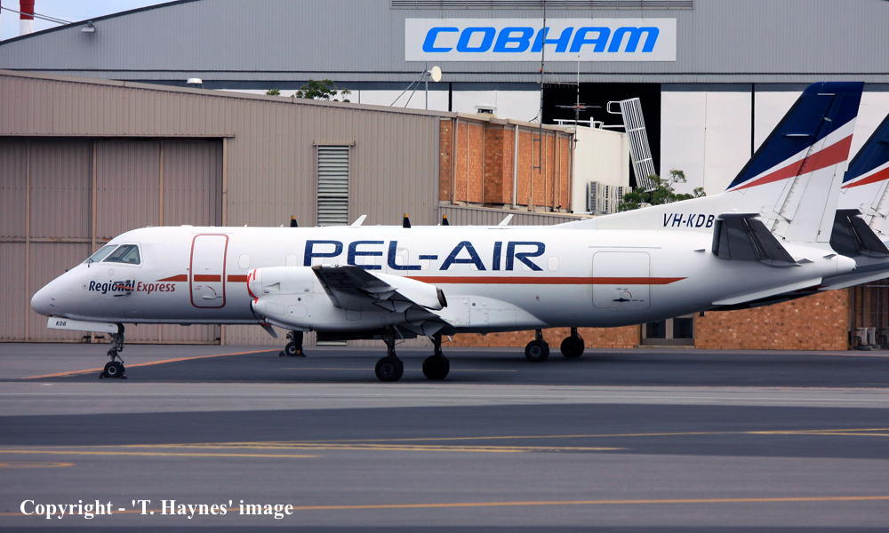 VH-KDB. Pel-Air - in the 'Regional Express' livery at Brisbane Airport, March 2011. (R. N. Smith Collection Copyright Image 1045-251.) |